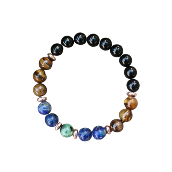 Pulsera de ónix negro, lapislázuli, ojo de tigre y rubí zoisita